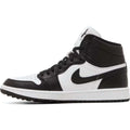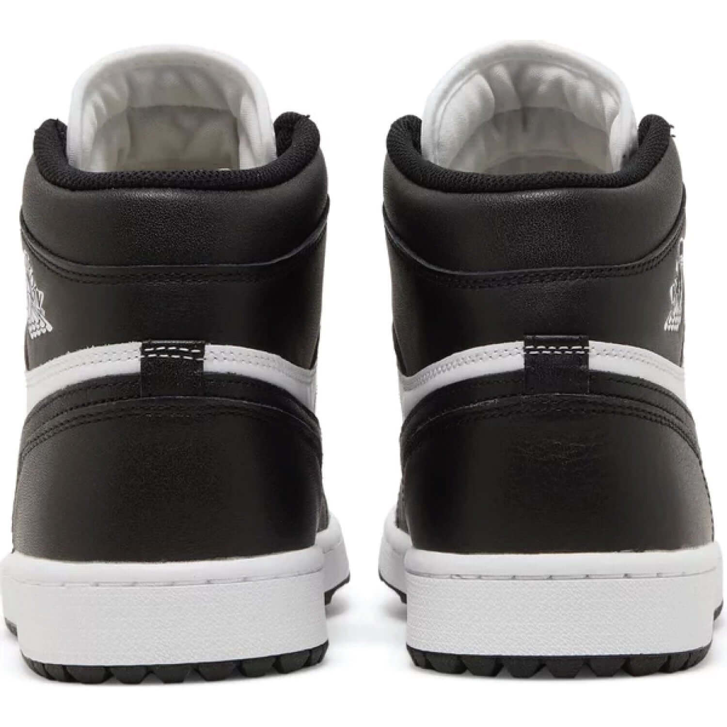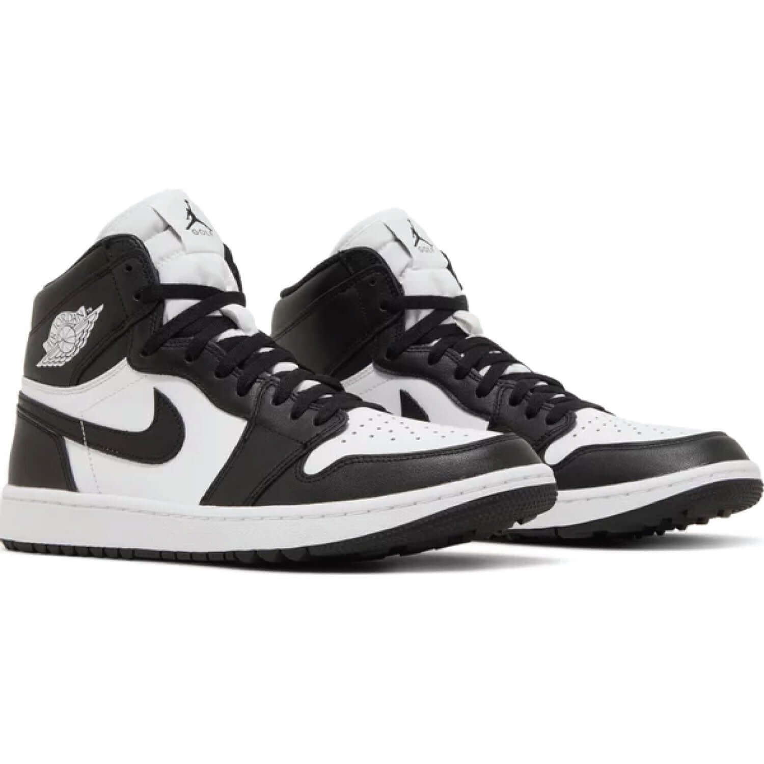 Hit the greens in style with the Air Jordan 1 High Golf 'Panda.' This golf shoe combines the classic high-top silhouette with golf-specific features, including a durable outsole designed for optimal traction. The black and white colorway adds a sleek and sophisticated look, making it perfect for both the course and casual wear.