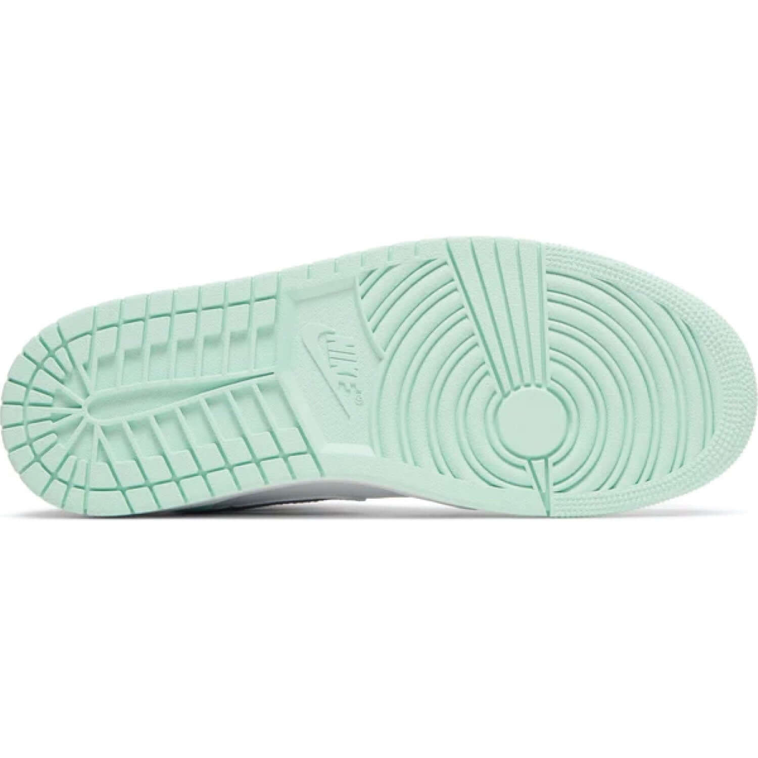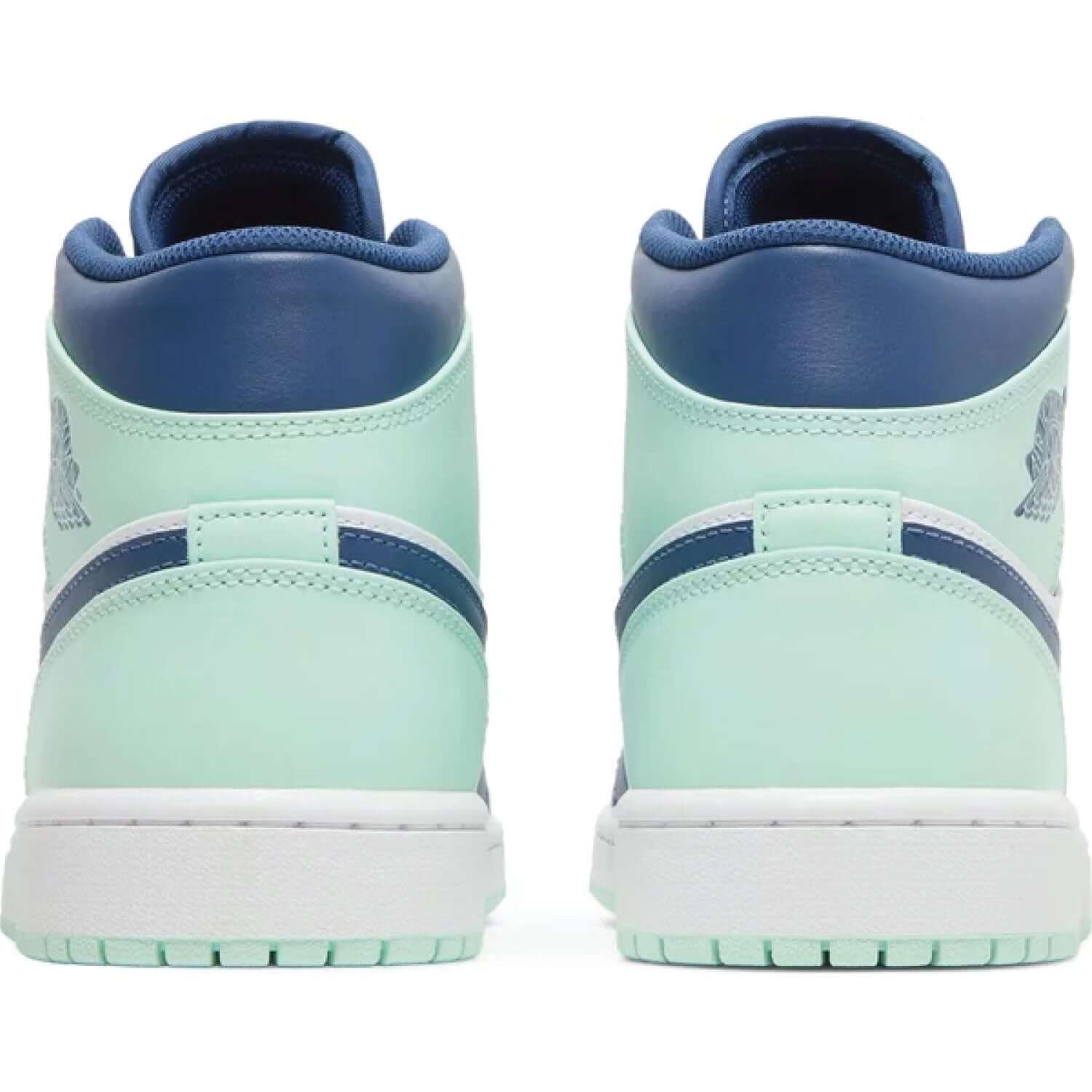 The Jordan 1 Mid Mystic Navy Mint Foam brings cooling tones to a retro-inspired silhouette based on the original 1985 high-top. The leather upper features a crisp white base, contrasted by forefoot overlays in Mystic Navy and a heel overlay in Mint Foam. A woven Jumpman tag adorns the breathable nylon tongue, while the iconic Jordan Wings logo is debossed on the lateral ankle. Anchoring the mid-top is a durable rubber cupsole, which pairs white sidewalls with a mint green rubber outsole.