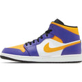 Show your team pride with the Jordan 1 Mid 'Lakers.' This sneaker features the legendary basketball team's iconic purple and gold colours, making it a must-have for fans. The mid-top design offers excellent support, while the premium materials ensure lasting comfort and durability.