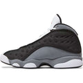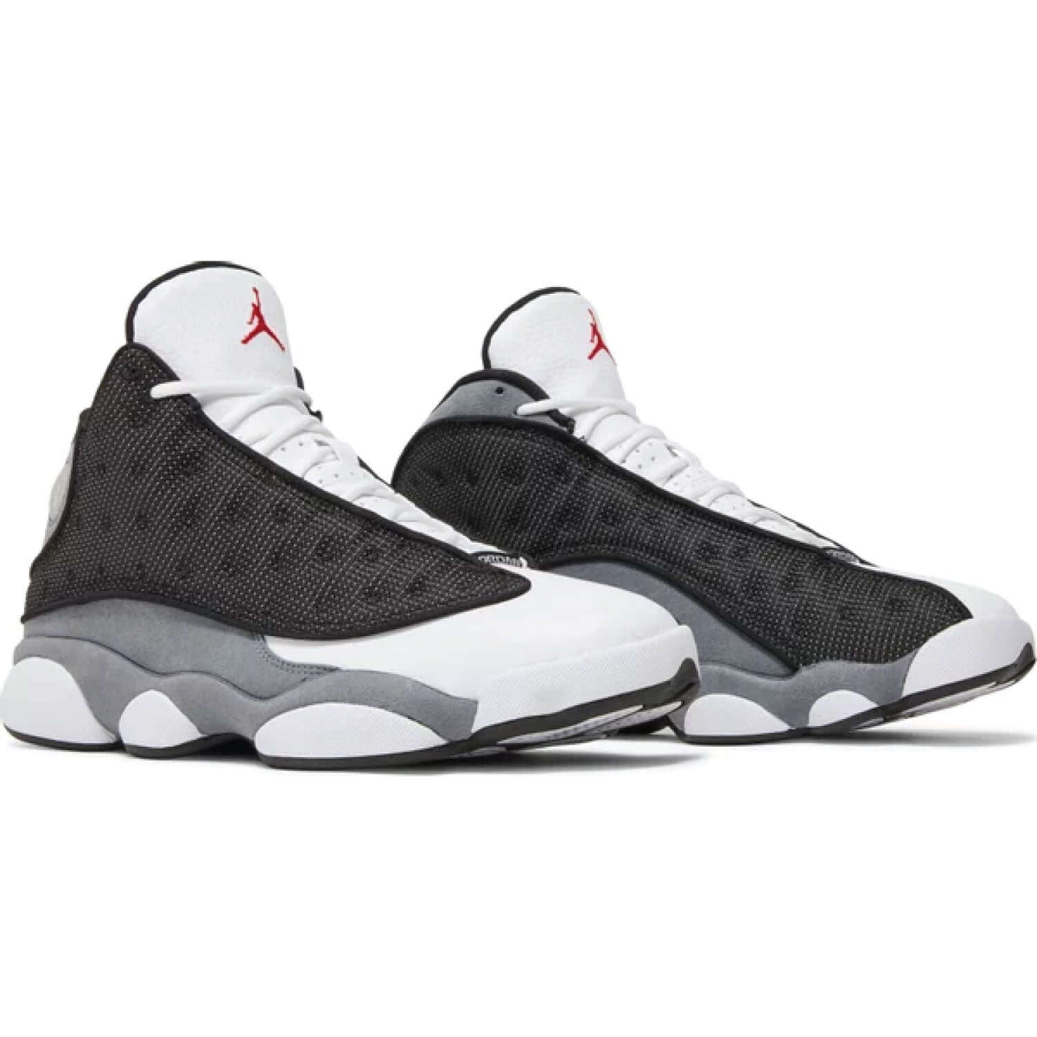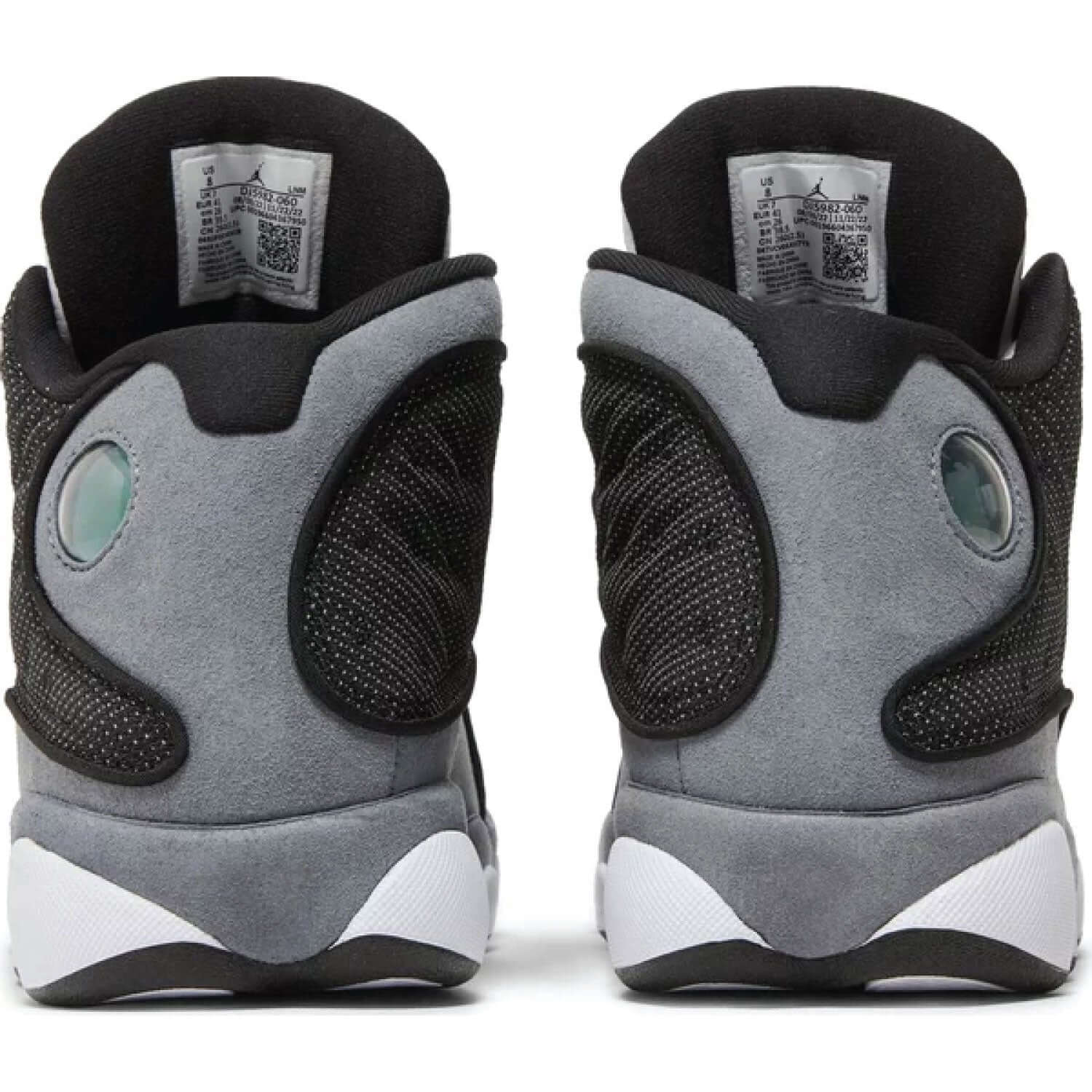 The Air Jordan 13 Retro ‘Black Flint’ dresses the legacy model in OG-inspired color blocking reminiscent of the ‘Flint’ colorway from 1998. Black mesh overlays dominate the upper, featuring a white leather toe box with synthetic grey suede along the midfoot and collar. A crimson Jumpman decorates the white leather tongue, while the 13’s holographic ‘cat eye’ graces the lateral ankle. Anchoring the sneaker is a panther paw outsole, fitted with white herringbone traction pods and an exposed carbon fiber shank plate.