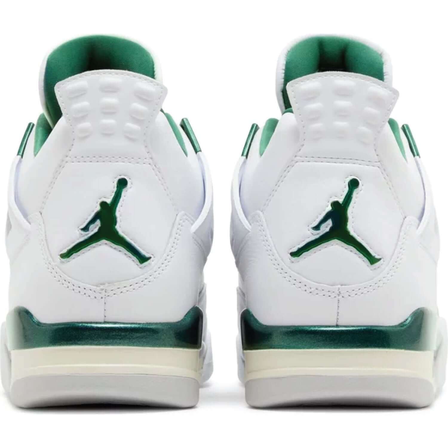 Comfort and performance are at the forefront of this design, with the signature Air-Sole unit in the heel and forefoot ensuring excellent cushioning and impact protection. The breathable mesh netting on the sides and tongue, coupled with the durable rubber outsole, provides flexibility and traction, making the Jordan 4 Oxidized Green perfect for everyday wear and athletic activities.