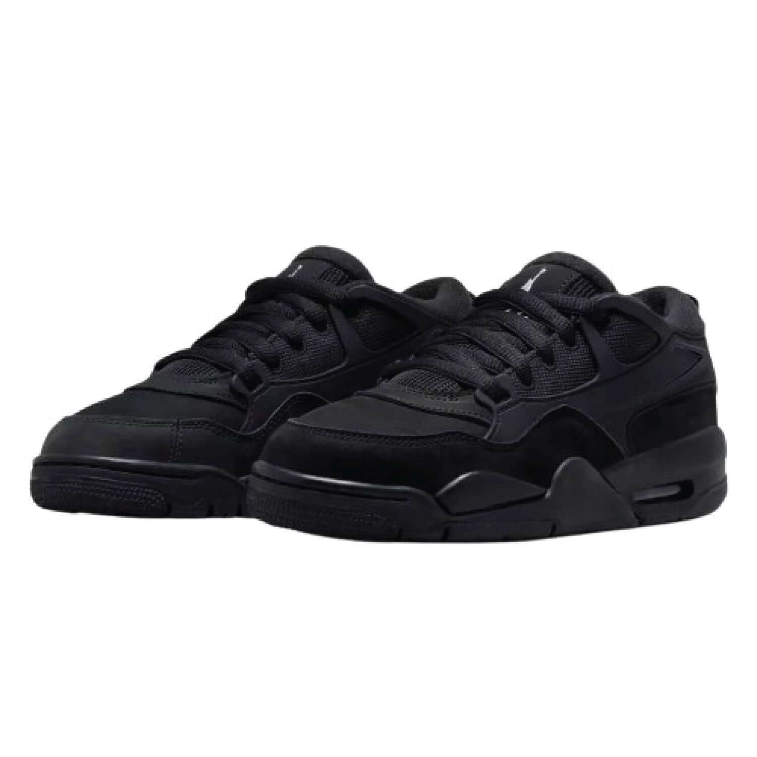 The Air Jordan 4 RM 'Black Cat' is a highly anticipated release that combines a classic design with modern updates, set to launch in Fall 2024. This sneaker features an all-black upper crafted from luxurious materials, including premium leather, breathable mesh, and soft nubuck. The monochromatic aesthetic is subtly accented with white branding, maintaining the shoe's sleek and stealthy look.