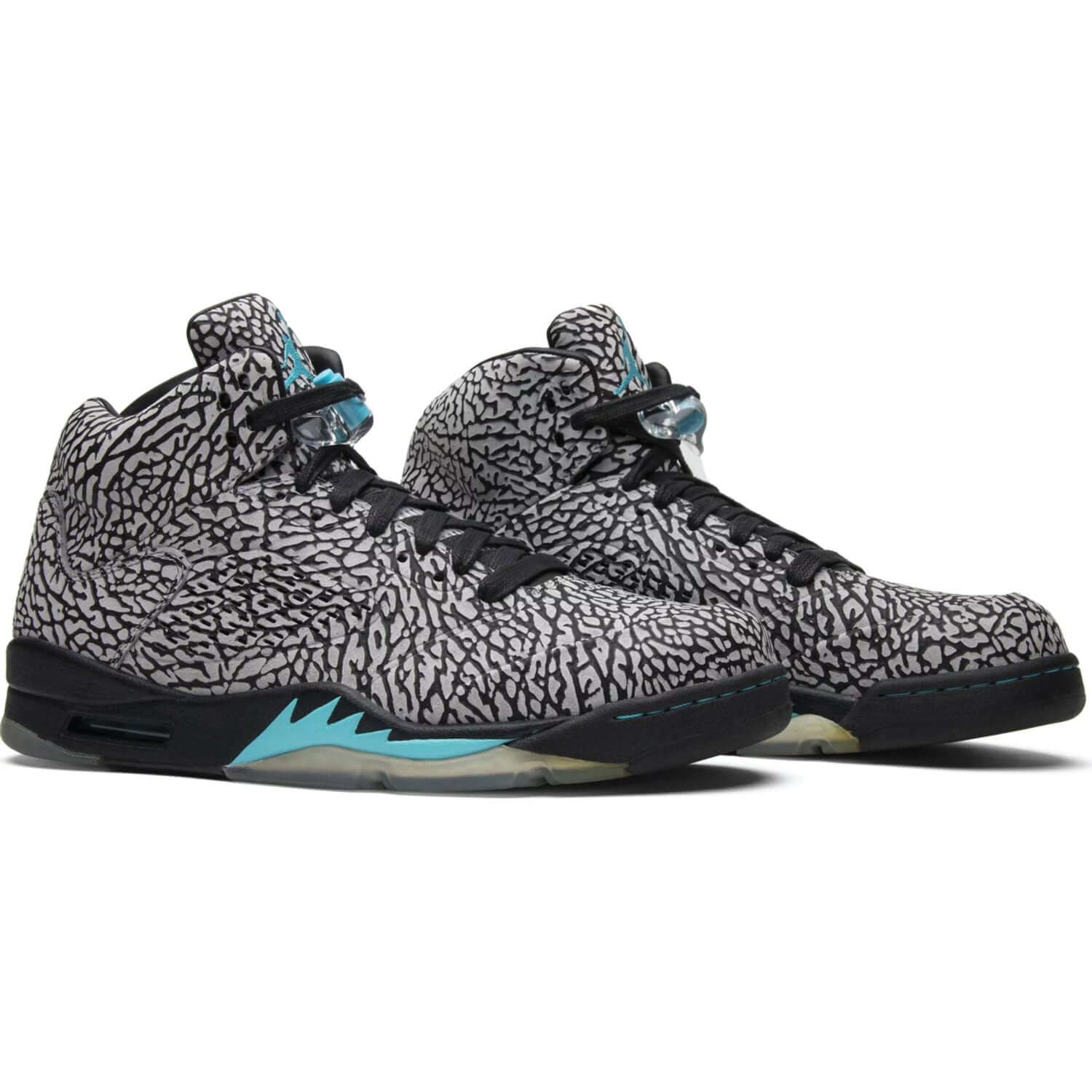 The Air Jordan 5 Retro ‘3Lab5,’ which was released as part of Jordan Brand’s Lab series, takes the brand’s familiar elephant print and applies it all over the upper. A combination of the Jordan 3 materials and Jordan 5 silhouette, the black and Cement Grey pattern covers all parts of the upper—including the heel Jumpman—save for the black laces and Gamma Blue tongue branding. The bright blue also appears on the shark-tooth detailing on the midsole and the lace toggle. The black midsole gives way to a partially translucent outsole, which reveals a final hit of Gamma Blue.