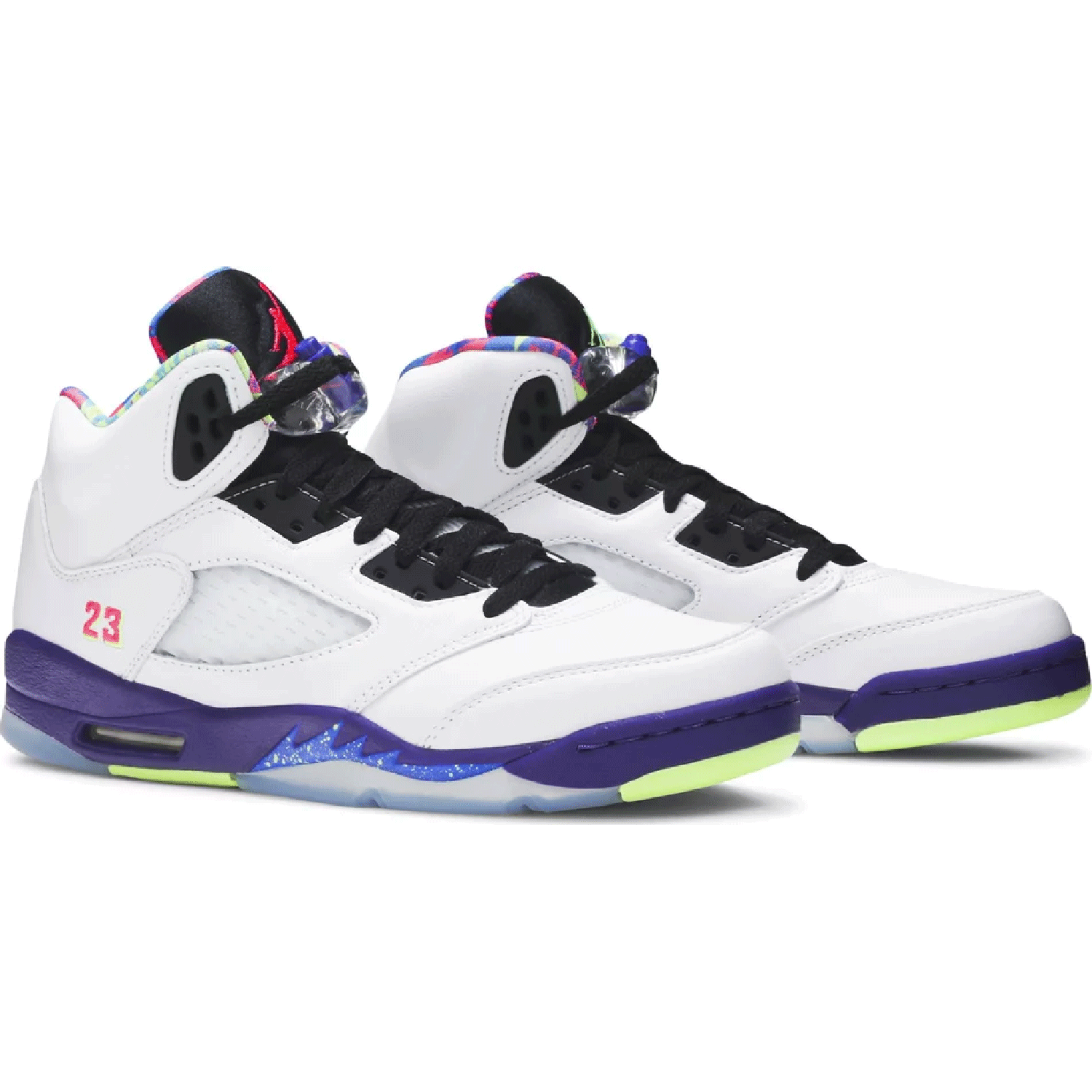 Made for big kids, the Air Jordan 5 Retro GS ‘Alternate Bel-Air’ is the long-delayed sequel to the ‘Bel Air’ Jordan 5 from 2013. The classic ‘90s sitcom, ‘The Fresh Prince of Bel-Air,’ is the design inspiration for both colorways. This pair replaces the grey suede upper of the original with a white leather build, while the details remains the same, including a geometric-print collar lining and mismatched branding elements in pink and Ghost Green.