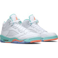 The Air Jordan 5 Light Aqua theme was introduced last year, and it’s finally dropping unique in grade school sizes this month. Featuring a summer-appropriate colorway, the sneaker is covered in white leather for its upper, followed by light aqua detailing and crimson pule accents across the midsole. Other details include speckled hits on the shark teeth, while an icy translucent outsole completes the look altogether.
