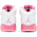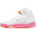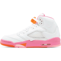 Made for big kids, the Air Jordan 5 Retro GS ‘Pinksicle’ updates the legacy silhouette with candy-bright pops of color. The mid-top sports a white leather upper with orange lace locks and translucent quarter-panel netting. Jumpman branding adorns the heel overlay and breathable mesh tongue in bright pink. The pastel hue is repeated on the polyurethane midsole, featuring visible Air-sole cushioning in the heel and signature shark tooth detailing in Safety Orange.