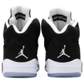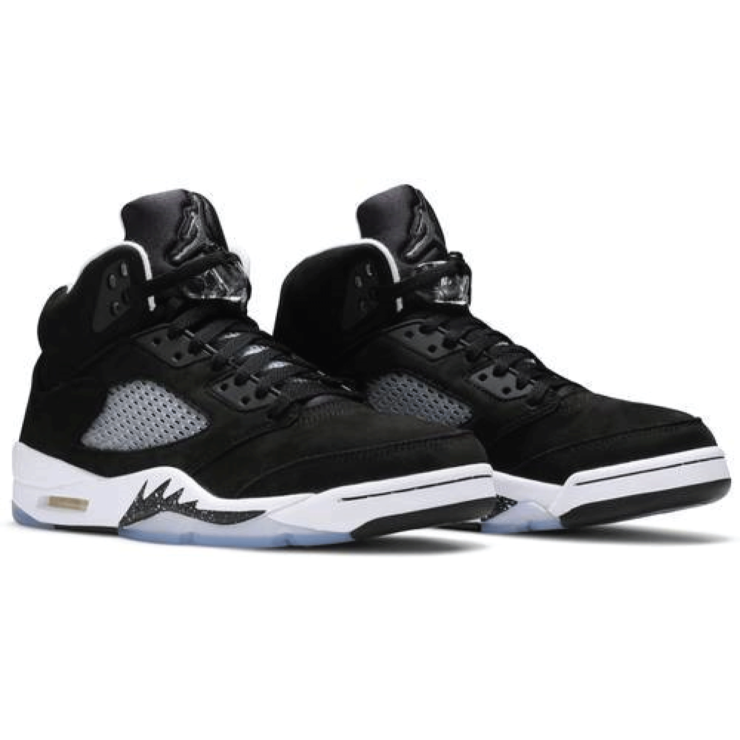 The Air Jordan 5 Retro ‘Oreo’ features a black nubuck upper and white midsole with speckled oreo shark teeth. Released in November of 2013 to celebrate the silhouette’s 23rd anniversary, the design also includes an anthracite tongue, a ‘23’ embroidered on the lateral side of the upper near the heel, and an ice blue translucent outsole