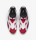 The Air Jordan 6 “Carmine 2021” is an original colorway of Michael Jordan’s sixth signature shoe that was re-released by Jordan Brand in 2021. This version of the “Carmine” brings back the original “Air” branding on the back of the shoe for the first time since the colorway’s debut in 1991. The return to the “OG” styling coincides with the Jordan 6’s 30-year-anniversary celebration in 2021. Along with the “Air” embroidery on the heel, the rest of the shoe retains the correct height and panel shapes as the inaugural release. That includes white leather overlays on the forefoot, mid-panel, and eyelets above the fiery red synthetic nubuck base. Perforations on either side of the shoe and collar are consistent with the original styling of the Air Jordan 6. A black liner and neoprene lace shroud with black Jumpman embroidery compliment the shoe’s retro style.