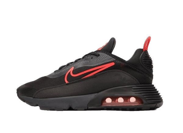 The Air Max 2090 ‘Radiant Red’ showcases sharp bursts of color on a retro-inspired silhouette that takes its cues from the iconic Air Max 90. A speed lacing system secures the black textile upper, reinforced with a tonal synthetic mudguard and equipped with interior bootie construction for a snug fit. Bold crimson hits land on the open-hole tongue, outlined Swoosh and extended pull loop. The sneaker is mounted on a black Cushlon foam midsole with a red-tinged Max Air unit under the heel.
