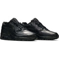 The Air Max 90 LTR GS 'Black' kids' shoe is draped in monochromatic premium materials to emphasize its next-generation street influence. Full-grain and synthetic leather overlays are reinforced with tonal stitching. Supportive cushioning in the collar, pod traction and an Air Max midsole are integral to the design.