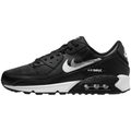 This offering of the Air Max 90 features an all-Black upper constructed in a mix of leather and mesh materials. White branding and midsole highlighted with two spray-painted brush Swooshes on the sides complete the design.