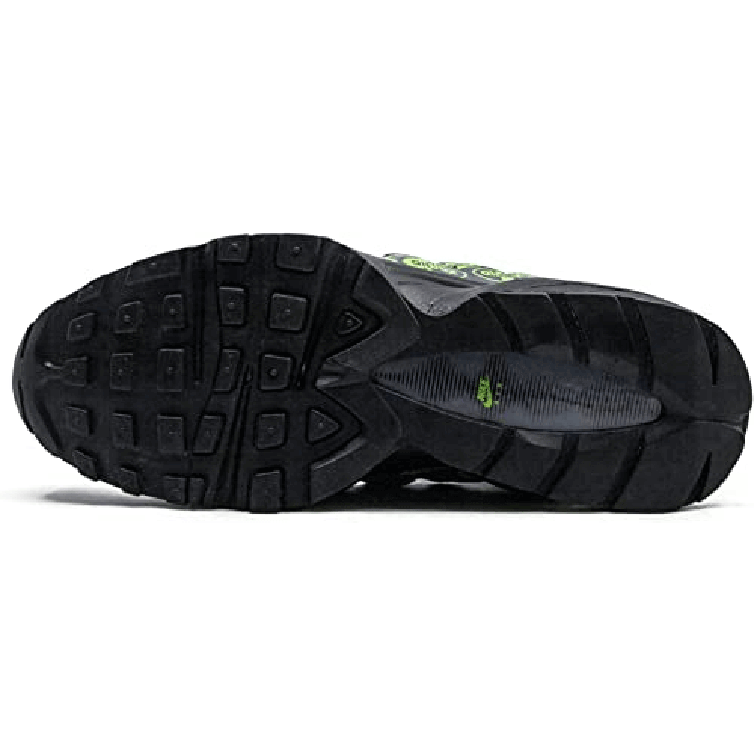 Talk about a busy look. Not just does this upcoming Air Max 95 come in a bold color scheme, it also comes with an upper that is covered in the Air Max 95 logo we’re used to seeing on the tongue. Replacing the customary Air Max 95 tongue branding is the Swoosh branding we’re used to seeing on the midfoot. The Black and Volt finish on the upper comes with detailing such as the ash-colored patent leather toe box, White laces, Volt-colored eyelets and a Black sole unit.