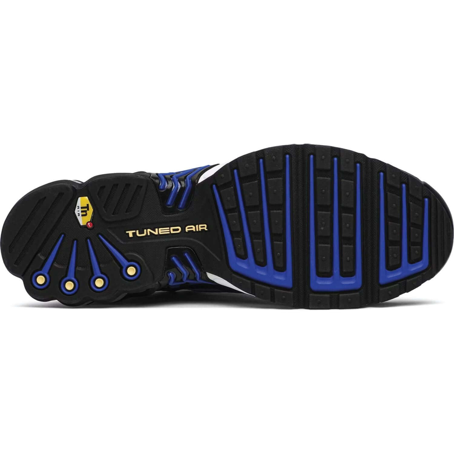 Released November 2019, the Air Max Plus 3 'Hyper Blue' features a transitioning colorway that reinforces its swooping design lines. Foam-backed padding around the collar protects the ankle from impacts, while the angular heel clip composed of cut-away ridges stabilizes the foot without weighing it down. Created for a streamlined yet sturdy fit and feel, this retro runner comes equipped with skinny support strips and a breathable mesh forefoot over Max Air cushioning.
