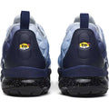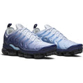 The Air VaporMax Plus 'Blizzard' is a striking fusion of modern innovation and classic design, delivering a bold and stylish sneaker experience. This unique model combines elements from the iconic Air Max Plus with the cutting-edge VaporMax sole, resulting in a sneaker that is both visually captivating and highly functional. The upper features a sleek, icy white gradient design that transitions into cooler blue tones, reminiscent of a winter blizzard. The synthetic upper is adorned with TPU overlays that mimic the original Air Max Plus design, providing structure and support.