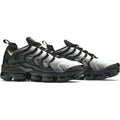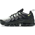 The Air VaporMax Plus 'Neon' was designed by Nike and was first released on April 6, 2018. The Air VaporMax Plus 'Neon' is a popular sneaker model. The upper of the Air VaporMax Plus 'Neon' features a gradient effect with a mix of black and dark gray tones transitioning to vibrant neon green. The design resembles the wavy lines found on the Air Max Plus, giving it a distinctive and futuristic look. The upper is constructed using a combination of synthetic materials and breathable mesh, providing comfort and flexibility. One of the standout features of the Air VaporMax Plus 'Neon' is its translucent VaporMax Air sole unit. The Air VaporMax technology is known for its responsive and lightweight cushioning, providing a comfortable and springy feel with every step. Additional details on the sneaker include a black plastic TPU cage overlay that wraps around the midfoot for added support and stability. Overall, the Air VaporMax Plus 'Neon' is a visually striking sneaker that combines classic and contemporary design elements.