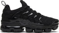 Setting the tone for Air Max hybrids, the Air VaporMax Plus 'Triple Black’ features an all-black neoprene gradient upper with a molded TPU cage made famous on the Air Max Plus. The sneaker sports 3M reflective detailing on the tongue, 'Vm Air' heel branding, and a black foam midsole with a matching translucent full-length VaporMax outsole. It dropped in January 2018 alongside ‘Cargo Khaki’, Sunset’ and ‘Photo Blue’ colorways