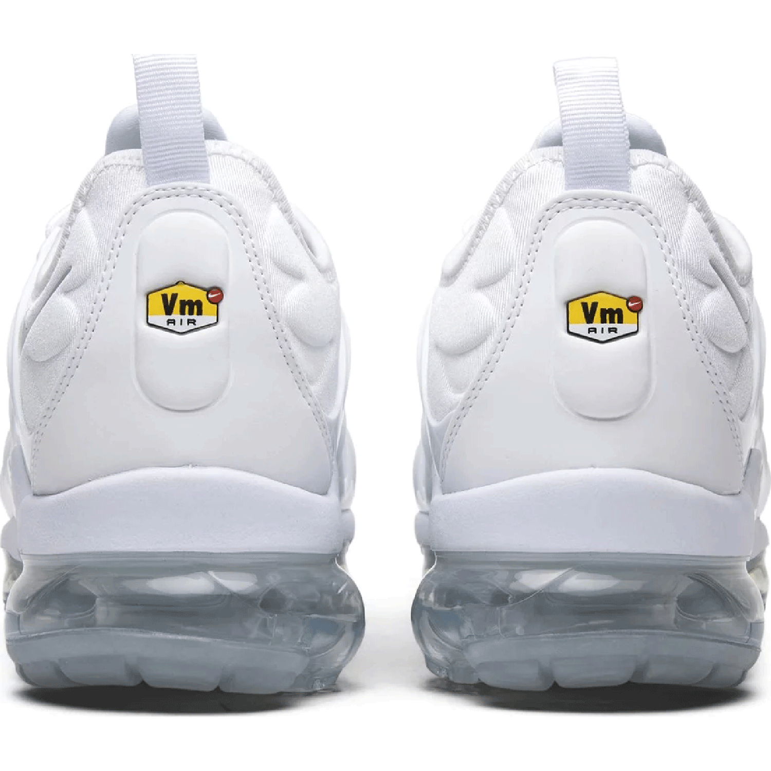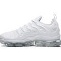 The Air VaporMax Plus - White is a Nike shoe that was released on January 25th, 2018. It is a stylish and modern sneaker. The upper of the shoe is predominantly white, creating a clean and fresh aesthetic. It is constructed with a combination of breathable mesh and synthetic overlays, providing durability and support. The VaporMax technology is incorporated into the sole unit, which sets this shoe apart from traditional Air Max models. Instead of a foam midsole with visible Air units, the VaporMax features individual Air pods directly underfoot, providing a responsive and cushioned ride. The outsole of the Air VaporMax Plus - White is made of durable rubber, offering excellent traction and grip on various surfaces. The white color extends to the outsole, creating a cohesive and sleek appearance.