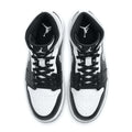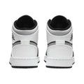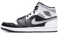 The Jordan 1 Mid Retro 'White Shadow' has a white and black leather upper with grey suede overlays on the toe box, eye stay, and heel. The shoe also features a black Swoosh on the lateral and medial sides, black laces, and a black Jump Man logo on the tongue. The shoe sits on a white midsole and black outsole. The insole features a graphic of Michael Jordan's signature. The Jordan 1 Mid 'White Shadow' offers a classic, versatile look that can be dressed up or down. Turn things up a notch. Released on October 31st, 2020, the iconic AJ 1 Retro "White Shadow" sneakers take a new inspiration this time around from the highly sought-after collaboration with Travis Scott back in 2019. Featuring earthy and natural tones, the pair is crafted from panels of sail and dark mocha leather, contrasted by bold black Swoosh detailing on the forefoot and eyelets. Finished with an Air tongue patch and an Air Wings embossed logo, these signature high-top pair are a versatile and coveted offering.