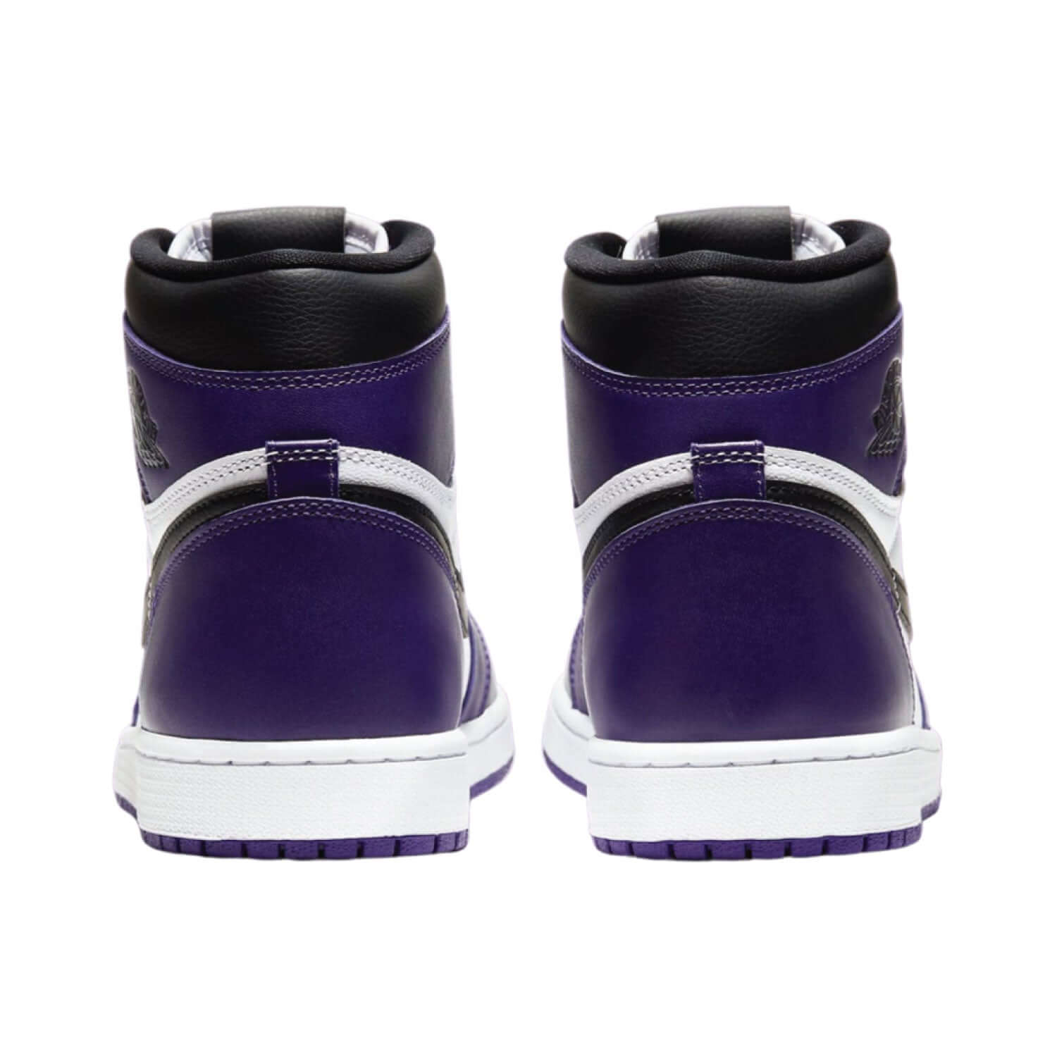 The Air Jordan 1 Retro High Court Purple White, designed by Peter Moore, debuted on April 11, 2020. This sleek sneaker boasts a vibrant purple and white colourway, premium leather construction, and comfortable cushioning. Iconic branding with the Air Jordan wings logo and Air branding emphasizes its legendary status.