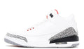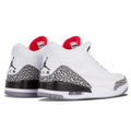 The Air Jordan 3 Retro 88 Cement White sneakers are white with cement grey and black accents. Jordan 3 has a red Jumpman logo on the tongue and a visible air sole unit. Air Jordan 3 was released in 2013 to commemorate the 25th anniversary of the original release of the AJ 3. The upper part of the shoe is made from white leather with elephant print overlays on the toe and heel. The midsole is made from white foam with a visible air unit in the heel. The outsole is made from grey rubber with a circular traction pattern. Jordan 3 retro has black laces with white eyelets and a black lining. The Jumpman logo is also featured on the heel of the shoe. The upper part of the shoe is made from white leather with elephant print overlays on the toe and heel. The midsole is made from white foam with a visible air unit in the heel. The outsole is made from grey rubber with a circular traction pattern. The shoe has black laces with white eyelets and a black lining. The Jumpman logo is also featured on the heel of the shoe.