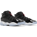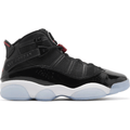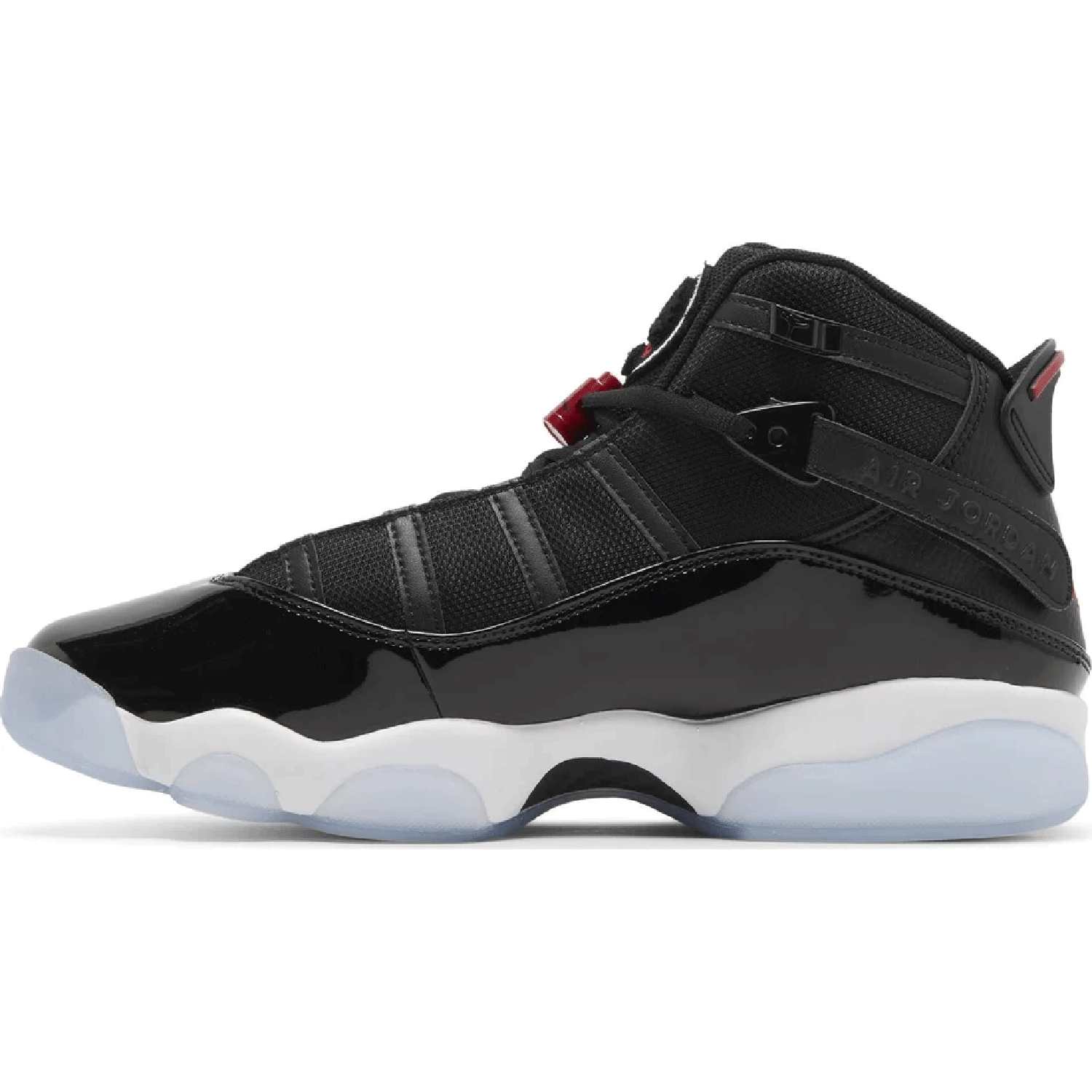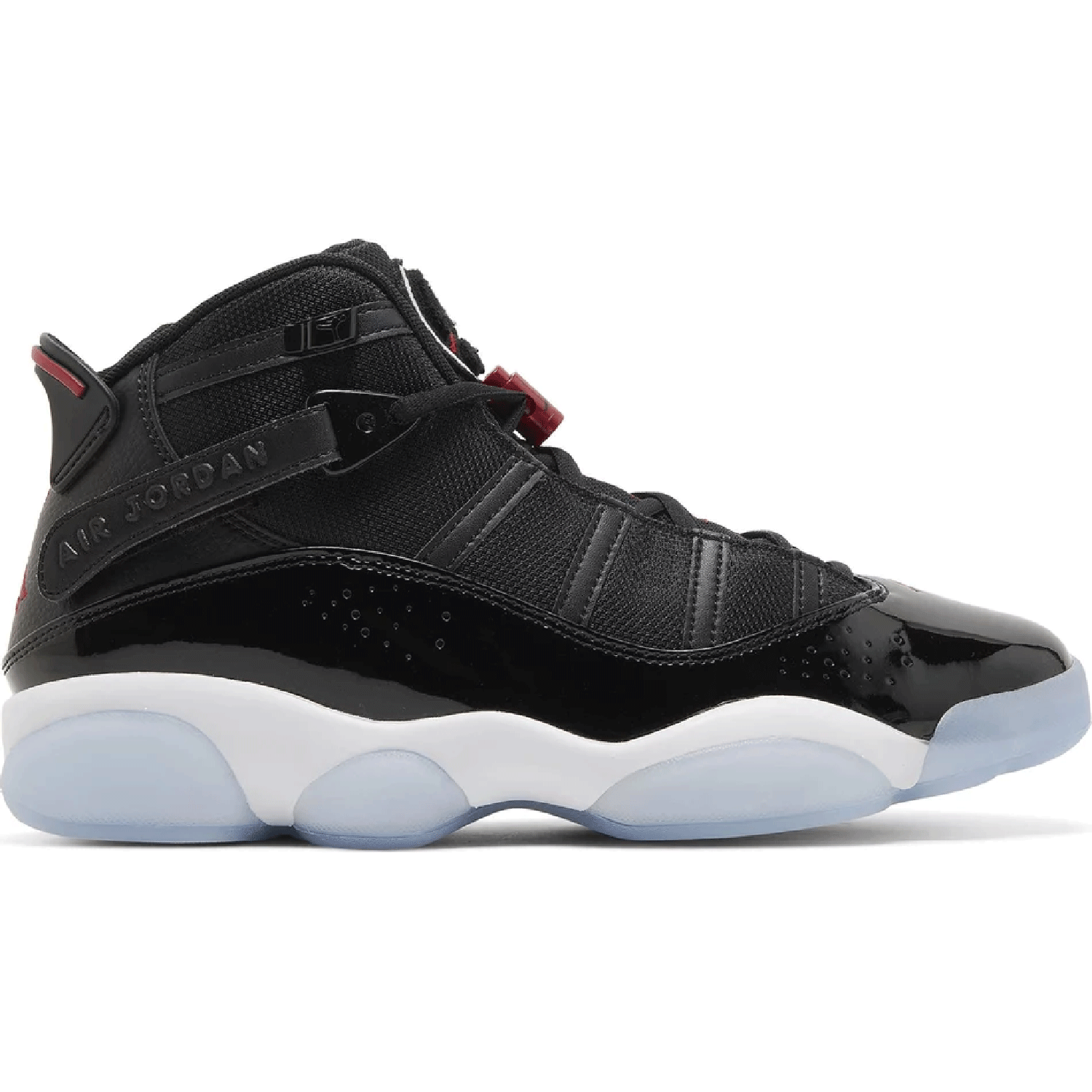 A classic Jumpman color scheme collides with design elements from six of MJ’s most popular signature sneakers on the Jordan 6 Rings 'Black Gym Red' release that’s now available. Mixing key pieces from the Air Jordan 6, 7, 8, 11, 12, and 13 into one hybrid design, the 6 Rings silhouette features a patent leather and mesh upper that’s borrowed from the Air Jordan 11, with adjustable straps on the ankles taken from the AJ 8, plus a heel tab similar to the AJ 6, all resting atop an icy translucent outsole straight from the AJ 13. Looking to hook yourself up with these hybrid kicks? You can pick up a pair of the “Gym Red” Jordan 6 Rings sneakers below.