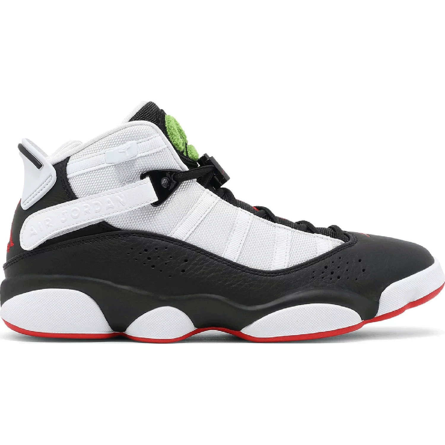 Celebrate the legend of Michael Jordan's outstanding career in the Jordan 6 Rings. This "He Got Game" colorway was specifically designed for the basketball fans. The design pulls in elements from game shoes he wore during his 6 championship seasons. Each shoe that His Airness wore during his six title seasons brings features to this iconic kick. You get the AJ 9’s mid-height silhouette, the lacelock and heel loop from the AJ 6, the AJ 7’s huarache-style inner sock, the fuzzy tongue logo and adjustable strap that appeared on the AJ 8, heel and forefoot Zoom Air cells from the AJ 13, and the AJ 12 lends its “TWO3” script treatment on the tongue and metal lace loops.